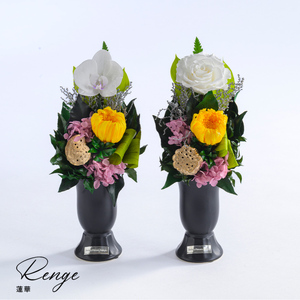 明るい色調と縦長のフォルムがモダンなお供え花。