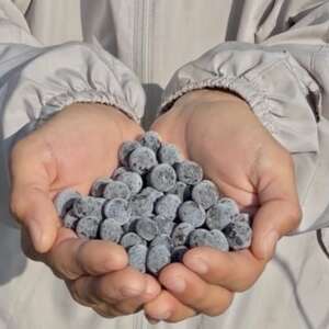 ごきげんブルーベリーファームの土は落ち葉や枯れ枝などから作られた微生物がたくさん含まれており、ふかふかで柔らかい黒土です。その黒土で育ったブルーベリーは実が大きくとっても甘くて美味しいのが特徴です。