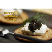 メルベイユにしかできない特別な飼育方法で育てられたキャビアフィッシュから、最高の完熟ポイントでキャビアを採卵し、水揚げからキャビア加工・瓶詰めまでの工程を迅速に対応することで、本来のクリアでクリーミーな味をご家庭にお届けすることを実現しました。