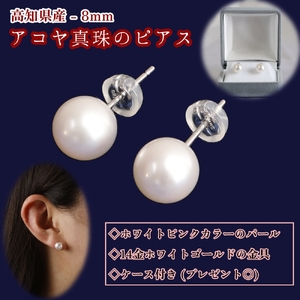 ふるさと納税 あこや本真珠のピアス(8mm珠・スタッドタイプ・ホワイトピンクカラー)【R00707】 高知県土佐清水市
