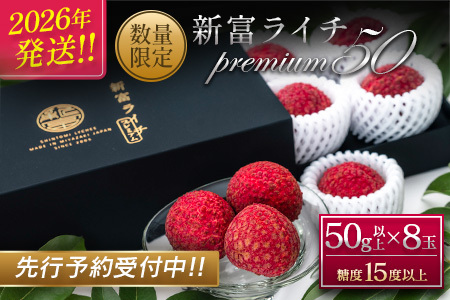 ふるさと納税 [2026年発送]先行予約 希少!国産<新富ライチpremium50>50g以上×8玉 国産 ブランド フルーツ 果物 贈答品【C52-26】 宮崎県新富町