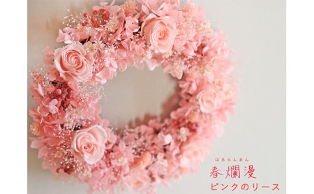 花七曜オリジナルデザインのプリザーブドフラワーリース、春爛漫ピンクのリースです。