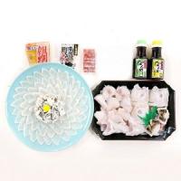 とらふぐ刺身200g、とらふぐ皮・身皮60g、とらふぐアラとブツ切り450g、とらふぐ焼ひれ4g