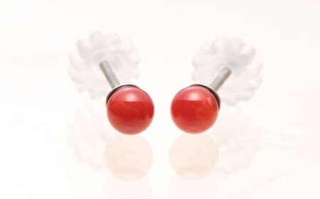 赤珊瑚の丸玉ピアス