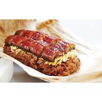 もち米と古代米を秘伝の蒲焼きのタレで炊きこんで、錦糸たまごとうなぎの蒲焼をのせて、竹皮で包みました。