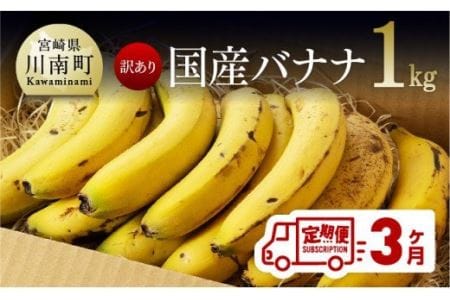 ふるさと納税 【定期便】【訳あり】国産バナナ1kg 3ヶ月定期便【国産 バナナ 無農薬 フルーツ 果物 デザート 朝食 スムージー 訳ありバナナ 全3.. 宮崎県川南町