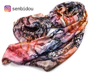 現代風の墨流し技法でシルクに染め上げた超大判のストールです。