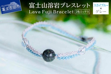 世界文化遺産に登録された富士山の溶岩石を宝石用に丸玉に加工し、ワックスコードで一本ずつ手作業により組み上げたブレスレットです。