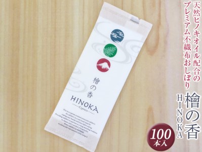 ふるさと納税 天然ヒノキオイル配合のプレミアム不織布おしぼり 檜の香(HINOKA) 100本入 ※離島不可≪不織布 抗菌 高級感 おしゃれ 使い捨て.. 栃木県さくら市
