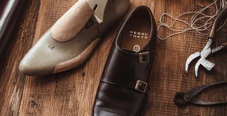 浦安市のリーガルコーポレーション本社内の工房にて熟練の靴職人が工程の九分(9割)を一足一足丁寧に仕立てる九分仕立てオーダーシューズ。