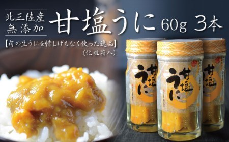 ふるさと納税 三陸産 甘塩うに60g 瓶詰 3本 国産 岩手県産 ミョウバン不使用 岩手県普代村