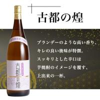 古都の煌(ことのきらめき):ブランデーのように香り高く、後味のキレが良いのが特徴。スッキリとした辛口は芋焼酎のイメージを覆す、上出来の一杯です。ロックやお湯割りでどうぞ。
