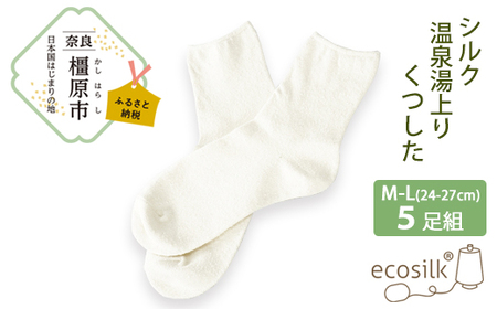 ふるさと納税 【M〜Lサイズ】シルク温泉湯上りくつした 5足組 靴下 くつ下 先丸 メンズ レディース 絹 日本製 国産 奈良県産◇ 奈良県橿原市