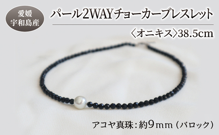 ふるさと納税 パール 2WAY チョーカー ブレスレット オニキス 38.5cm 暁工房 ネックレス 真珠 アクセサリー アコヤ真珠 本真珠 ファッション .. 愛媛県宇和島市