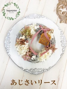 大人かわいいアジサイリースで、インテリア、ギフト、母の日にもおすすめです。