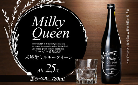 ふるさと納税 米焼酎ミルキークイーン 黒ラベル 25度 720ml_米焼酎 ミルキークイーン 焼酎 720ml 黒ラベル 25度 久留米産 米麹 食用米 使用 .. 福岡県久留米市