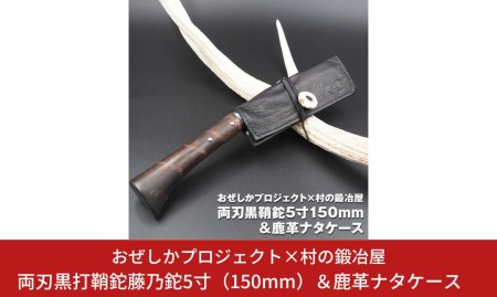 ふるさと納税 おぜしかプロジェクト×村の鍛冶屋 両刃黒打鞘鉈藤乃鉈5寸(150mm)&鹿革ナタケース キャンプ用 アウトドア用 薪割り【065S00.. 新潟県三条市