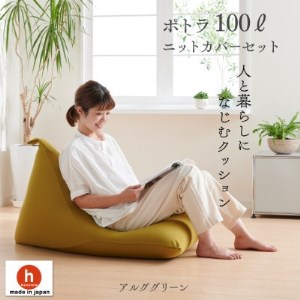 ・ビーズクッション プレミアムポトラ100リットル ニットカバー付(アルクグリーン)[1個 サイズ:W70×D95×H70cm 重量:約2.7kg]