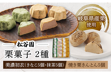 【岐阜県産の栗使用】栗ごころ1本・焼き栗きんとん5個・美濃初衣(きなこ2個・抹茶3個)【松谷園】 [TAX004]