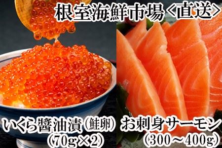 ふるさと納税 根室海鮮市場<直送>いくら醤油漬け70g×2P・刺身用トラウトサーモン(背)300〜400g×1本 A-28211 北海道根室市