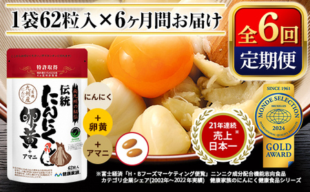 ふるさと納税 F0-007 《定期便・全6回》伝統にんにく卵黄+アマニ・スタンドタイプ(1袋62粒入)(総合計6袋)【健康家族】霧島市 サプリメント サ.. 鹿児島県霧島市