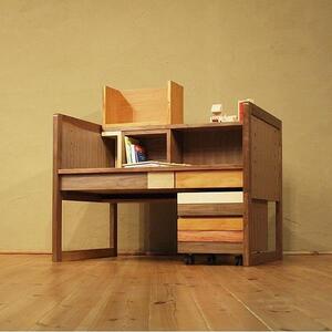 いろんな色の木を使って自由にのびのびと作った楽しいキッズデスクです。
