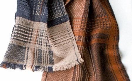4つの変わり織り柄を組み合わせたふっくらウールマフラー
