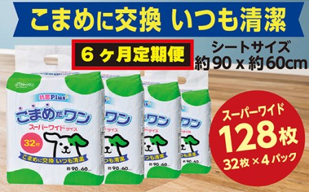 ふるさと納税 308【6ヶ月連続お届け】定期便 6回 ペットシート こまめだワン スーパーワイド 32枚×4袋 クリーンワン ペットシーツ 犬用 抗.. 茨城県茨城町