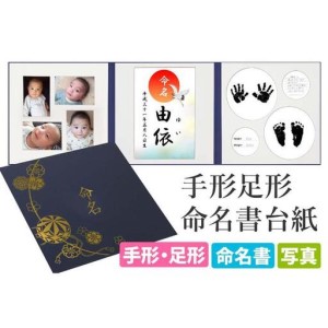 ふるさと納税 命名書 台紙 手形 足形 写真 名前 赤ちゃん 手形足形命名書 紺 愛知県名古屋市