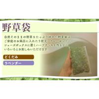 自然そのままの野草をたっぷり詰めた野草袋はご家庭のお風呂に入れたり枕元・クローゼット・シューズボックスに置くチンキを作るなど、いろいろとお楽しみいただけます。「どくだみ」と「ラベンダー」の2種類になります。