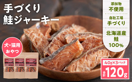 ふるさと納税 【 アスランエゾベニソン 鮭ジャーキー 40g×3パック 】 T012-012 ドッグフード キャットフード 鹿肉 添加物不使用 犬用おや.. 北海道苫小牧市