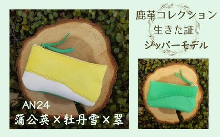 ふるさと納税 AN24 鹿革コレクション 生きた証 ジッパーモデル(蒲公英×牡丹雪×翠)【 ポーチ バッグ 小物入れ 小物 雑貨 作家 皮 .. 兵庫県宍粟市