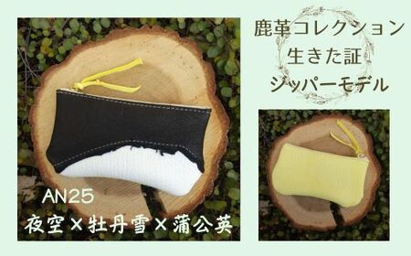ふるさと納税 AN25 鹿革コレクション 生きた証 ジッパーモデル(夜空×牡丹雪×蒲公英)【 ポーチ バッグ 小物入れ 小物 雑貨 作家 .. 兵庫県宍粟市