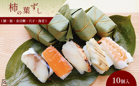 柿の葉ずし10個入り (鯖、鮭、金目鯛、穴子、海老)