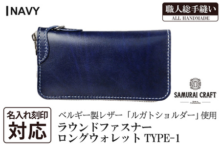 ふるさと納税 サムライクラフト 長財布 ラウンドファスナー<ネイビー>(200mm×105mm×厚み25mm) レザー 革 レザー製品 革製品 さいふ .. 宮城県大和町