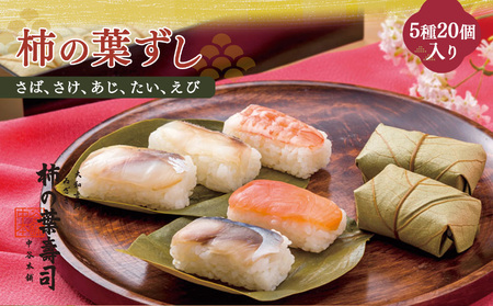 柿の葉寿司「さば、さけ、あじ、たい、えび 各4個」5種20個入り