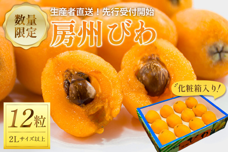 ふるさと納税 【先行受付 2026年5月下旬〜6月中旬発送予定】房州びわ2Lサイズ以上×12粒(化粧箱入り) mi0044-0014 千葉県南房総市