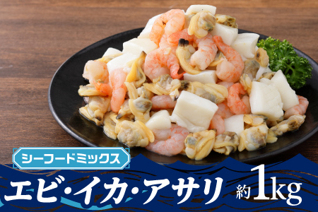 ふるさと納税 ZH152.【お試し!】3種のシーフードミックス約1キロ(エビ・イカ・アサリ) 福岡県新宮町