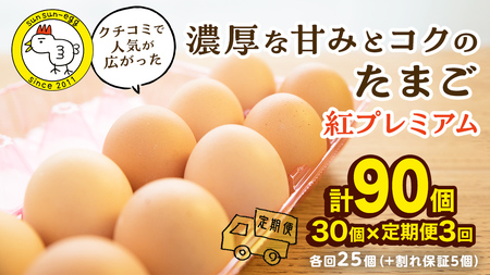 ふるさと納税 【 定期便 】【 全3回 コース 】紅プレミアム 卵 30個 ( 25個 入り + 割れ保障 5個 ) 茨城県つくばみらい市