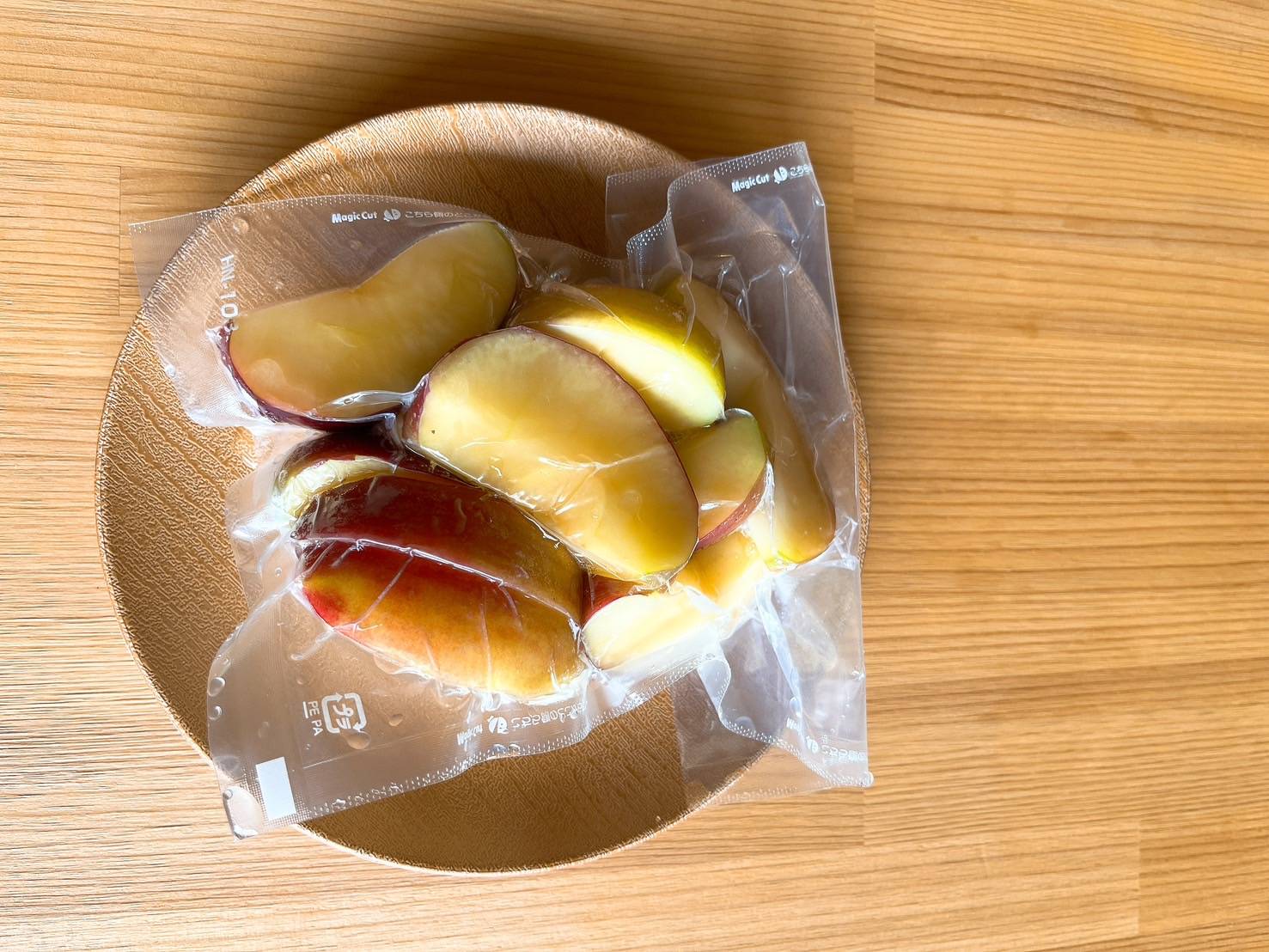 毎年大好評のフルプロ農園の葉取らずりんごを、新鮮なうちに丁寧に冷凍しました。