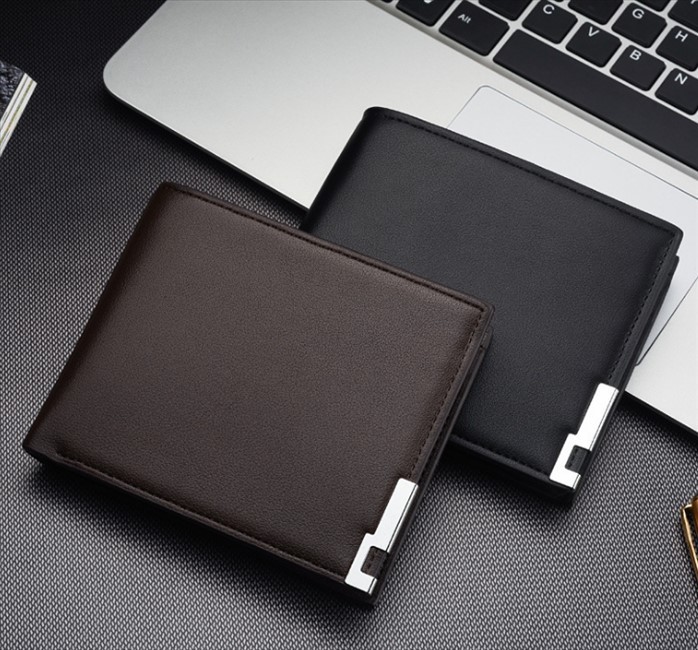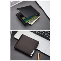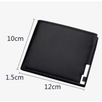 二つ折り 財布 小銭入れなし カード収納 メンズ PU レザー ブラック 無地 薄型 軽量 無地 金具 秋