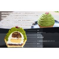 タルトカップに粒あんを敷き詰め、ラム酒を染み込ませたスポンジに選りすぐりの和栗の渋皮煮を乗せて生クリームで覆い、濃厚な抹茶クリームで包み込みました。