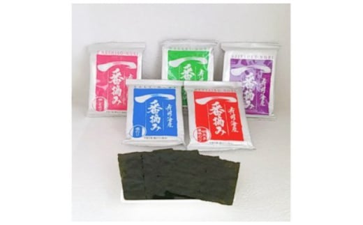 色が濃くツヤのある表面と、厚めでパリッとしていて、口に含むととろけるような食感が特徴の有明海苔です。一番摘みならではの香りと食感をお楽しみください。