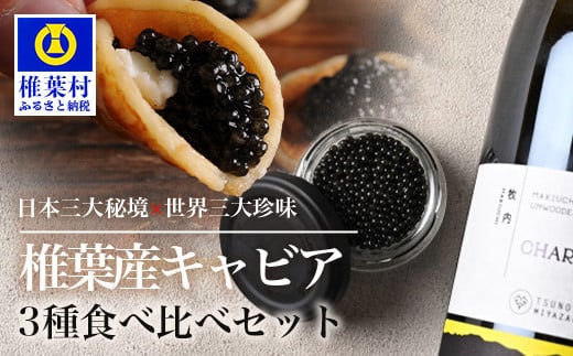 通常の平家キャビアと、新食体験 フレーバーキャビアの3種食べ比べセットです。