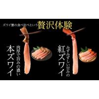 こちらの返礼品では、ズワイ蟹の食べ比べという珍しい体験ができます。「ぎゅっと詰まった歯ごたえ」が特長の本ズワイと、みずみずしさと甘みが特長の紅ズワイの違いをお楽しみください。また、本ズワイからは濃厚な出汁が取れます。紅ズワイの出汁と合わせた「W出汁」で、たっぷりのお野菜と「〆のおじや」までご堪能ください。