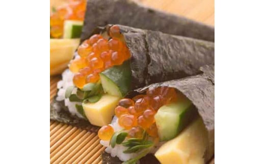 4つ切り(手巻き海苔を半分にカットした海苔)でごはんを巻くと、海苔とごはん、手巻きの具のバランスが良いです。