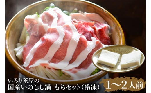 創業50年以上になるいろり茶屋の人気商品、いのしし鍋のセットです。