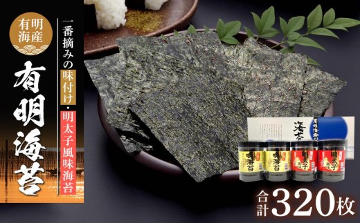 ふるさと納税 乾物 のり 福岡県 筑前町 有明海産一番摘み 自慢の味海苔2本(10切80枚)&自慢の明太子風味海苔2本(8切80枚) 計4本セット(計320枚) 海苔 のり …