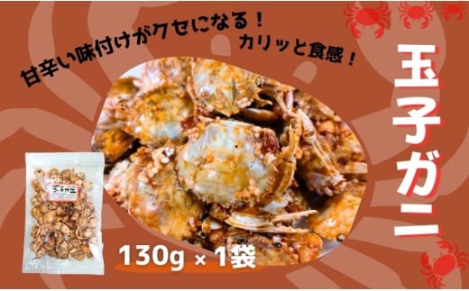 「カニ(アカイシガニ)」を昔ながらの製法で、丸ごと食べられるよう、甘辛い味付けとカリカリの食感に仕上げました。カルシウムが豊富に含まれています。(100gあたり 8,901mg)お子様のおやつに。お酒のおつまみに。カリカリ食感の玉子ガニをお召し上がり下さい。※高温多湿、直射日光を避けて保管してください。※開封後は、お早めにお召し上がり下さい。