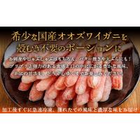 ・国産のオオズワイガニ(バルダイ種)はとても希少です。世界のズワイガニ水揚げ量の2〜3%漁獲されない為、ズワイガニの中でも最高級品種とされている種類のカニです。通常の本ズワイガニ(オピリオ種)に比べて繊維が太くプリプリとした食感が特徴です。
